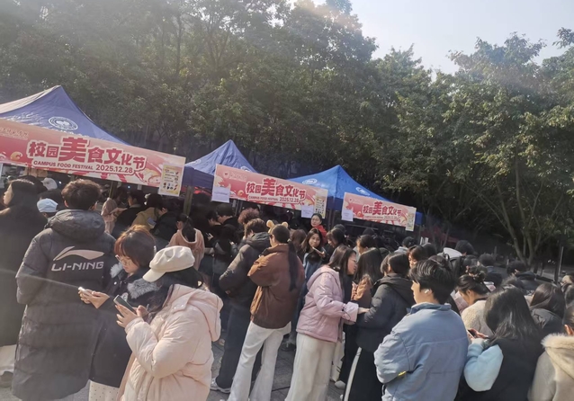 12月28日上午十一点半,我校校园美食节在南苑食堂小广场正式拉开帷幕,吸引了大批同学前来打卡体验。